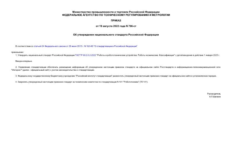 Тип: Приказ 796-ст