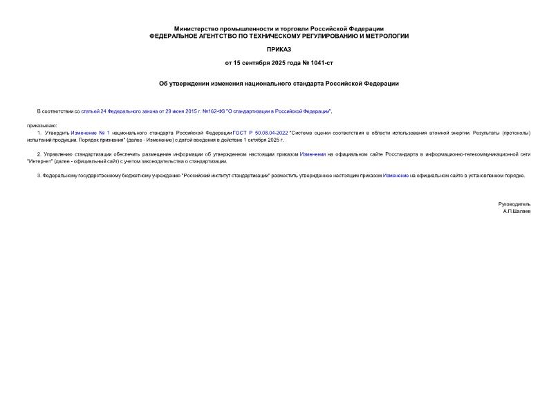Тип: Приказ 1041-ст