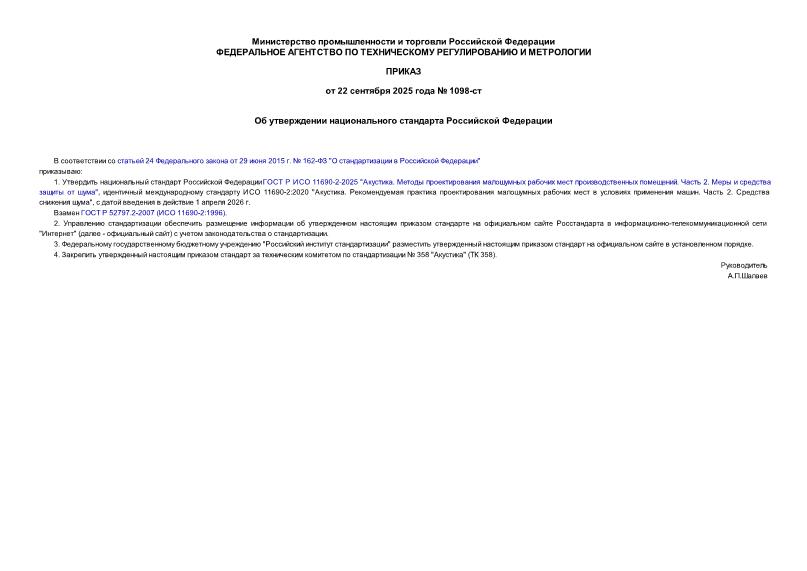 Тип: Приказ 1098-ст