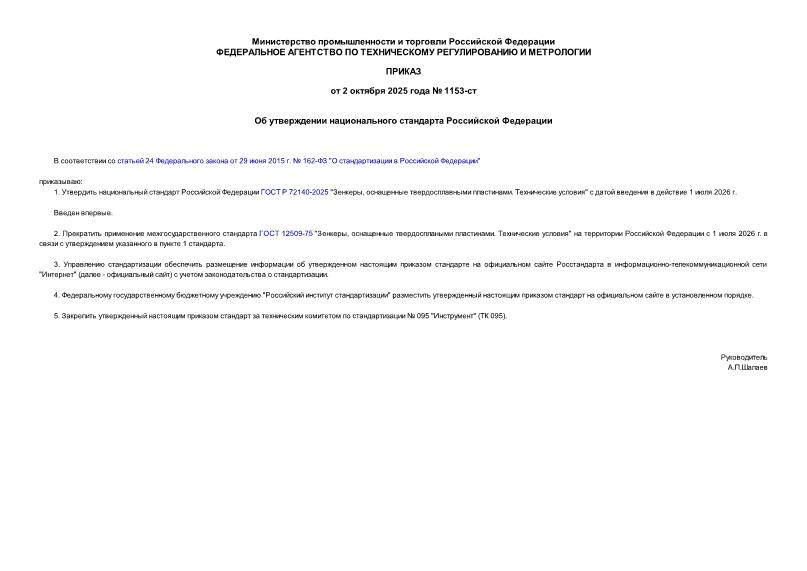Тип: Приказ 1153-ст