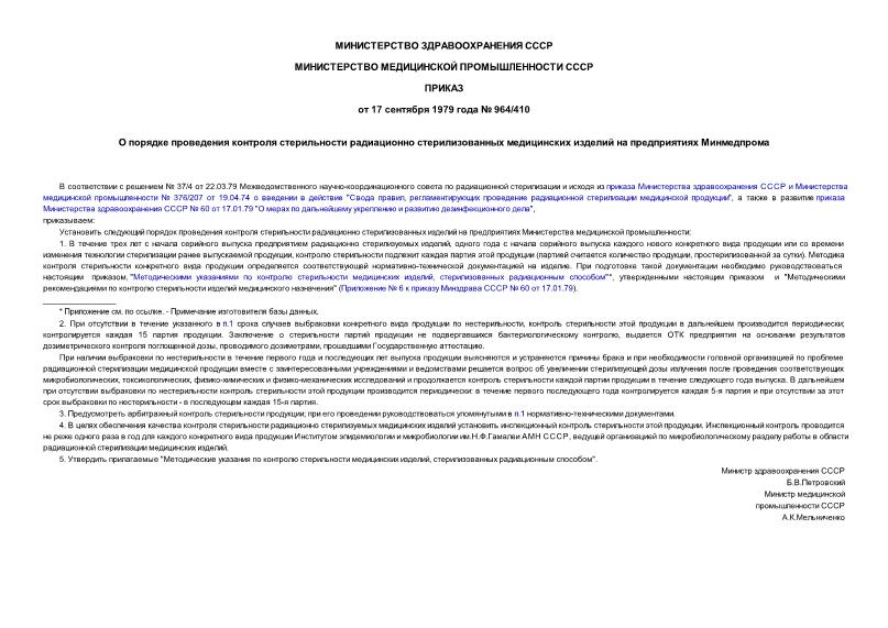 Утвержден: Минздрав СССР; Министерство здравоохранения СССР, 17.09.1979