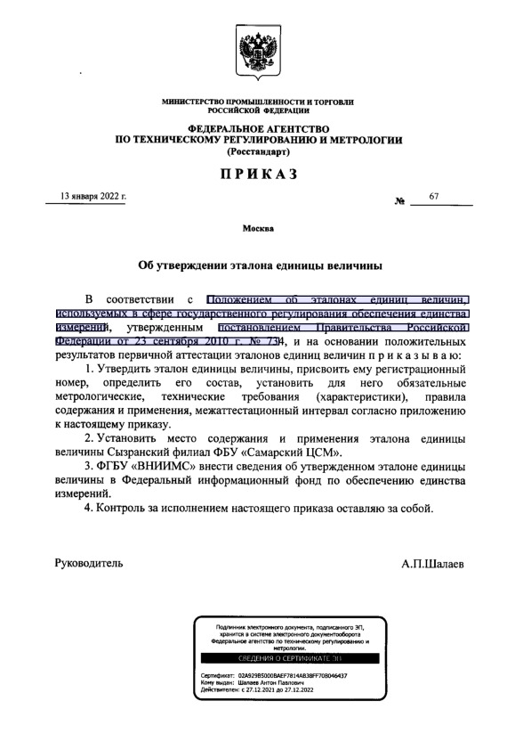 Утвержден: Росстандарт; Федеральное агентство по техническому регулированию и метрологии, 13.01.2022