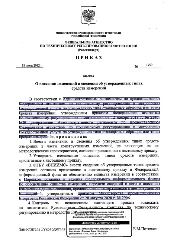 Тип: Приказ 1750