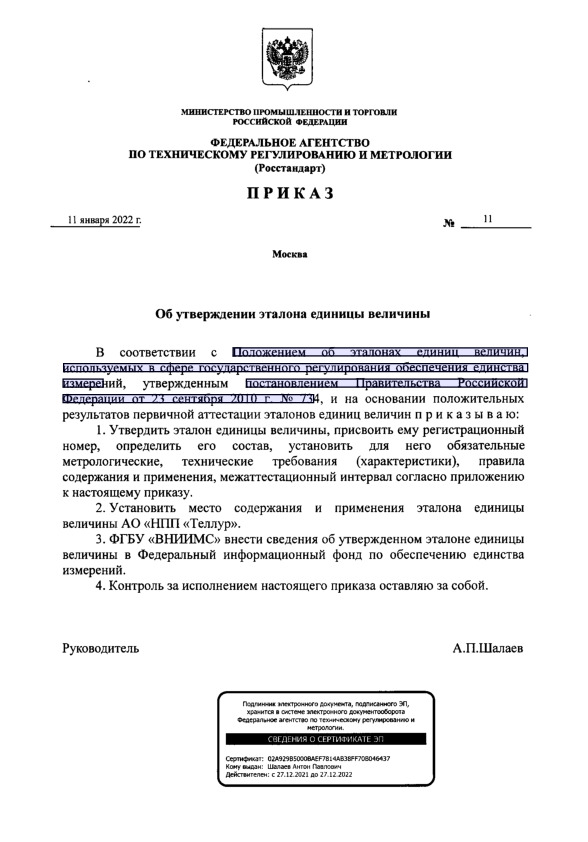 Утвержден: Росстандарт; Федеральное агентство по техническому регулированию и метрологии, 11.01.2022
