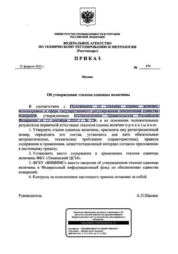Утвержден: Росстандарт; Федеральное агентство по техническому регулированию и метрологии, 25.02.2022