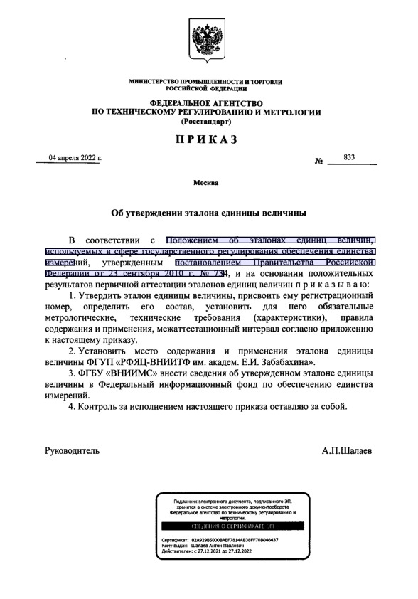 Утвержден: Росстандарт; Федеральное агентство по техническому регулированию и метрологии, 04.04.2022