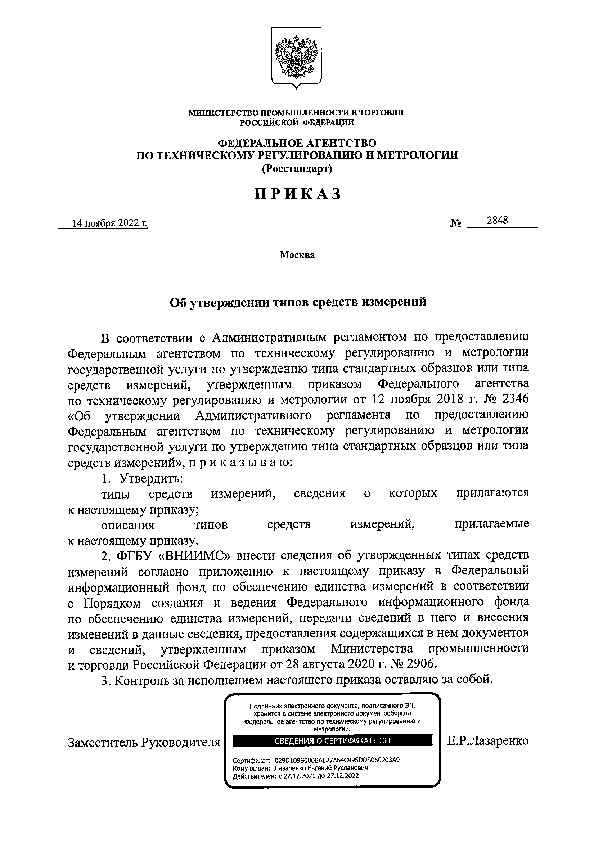 Утвержден: Росстандарт; Федеральное агентство по техническому регулированию и метрологии, 14.11.2022