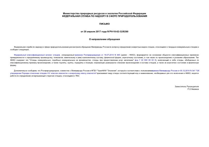 Утвержден: Росприроднадзор; Федеральная служба по надзору в сфере природопользования, 20.04.2017
