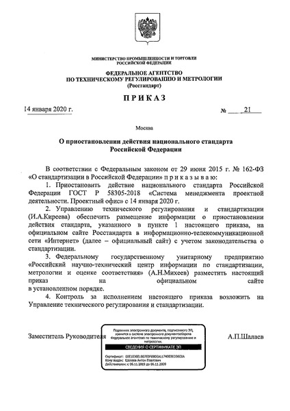 Утвержден: Росстандарт; Федеральное агентство по техническому регулированию и метрологии, 14.01.2020