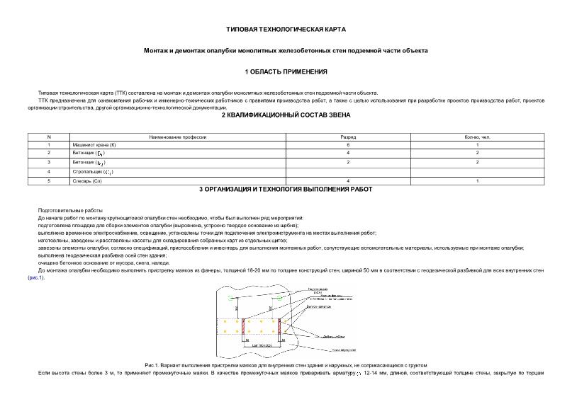 ТТК Монтаж и демонтаж опалубки монолитных железобетонных стен подземной части объекта