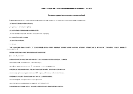 Техническое описание Конструкции и материалы волоконно оптических кабелей