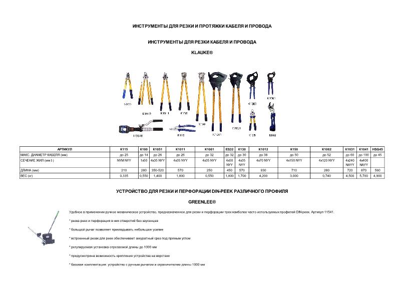 Техническое описание Инструменты для резки и протяжки кабеля и провода