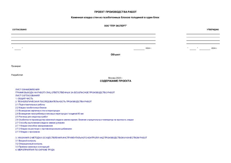 ППР Каменная кладка стен из газобетонных блоков толщиной в один блок