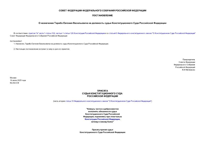 Утвержден: Совет Федерации; Совет Федерации Федерального Собрания Российской Федерации, 16.07.2025