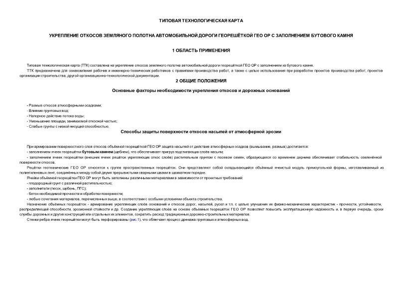 Документ "Укрепление откосов земляного полотна автомобильной дороги решёткой ГЕО ОР с заполнением бутового камня" находится в системе НТД NormaCS