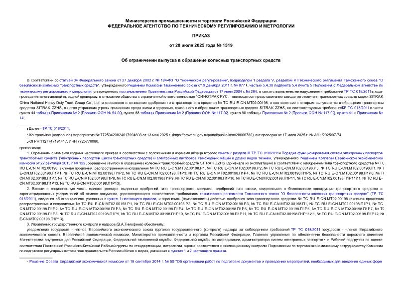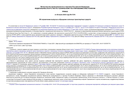 - Технический регламент Таможенного союза "О безопасности колесных транспортных средств"
