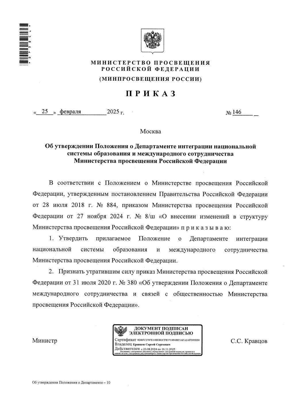 Утвержден: Минпросвещения России; Министерство просвещения Российской Федерации, 25.02.2025
