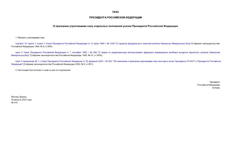 Утвержден: Президент РФ; Президент Российской Федерации, 30.08.2025