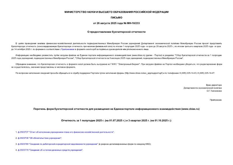Тип: Письмо МН-18/233
