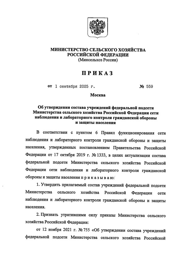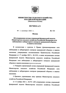 Утвержден: Минсельхоз России; Министерство сельского хозяйства и продовольствия РФ, 01.09.2025