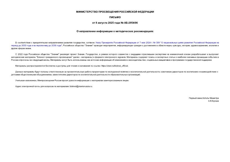 Тип: Письмо АБ-2954/06