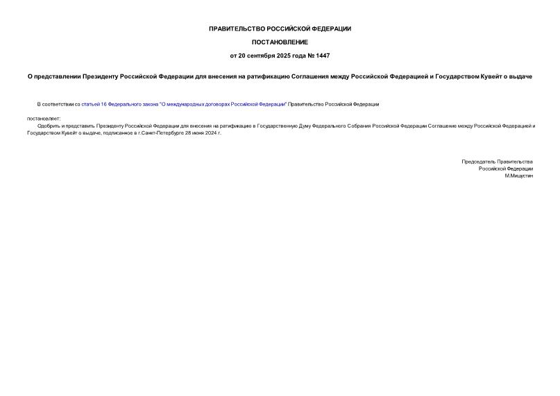 Утвержден: Правительство РФ; Правительство Российской Федерации, 20.09.2025