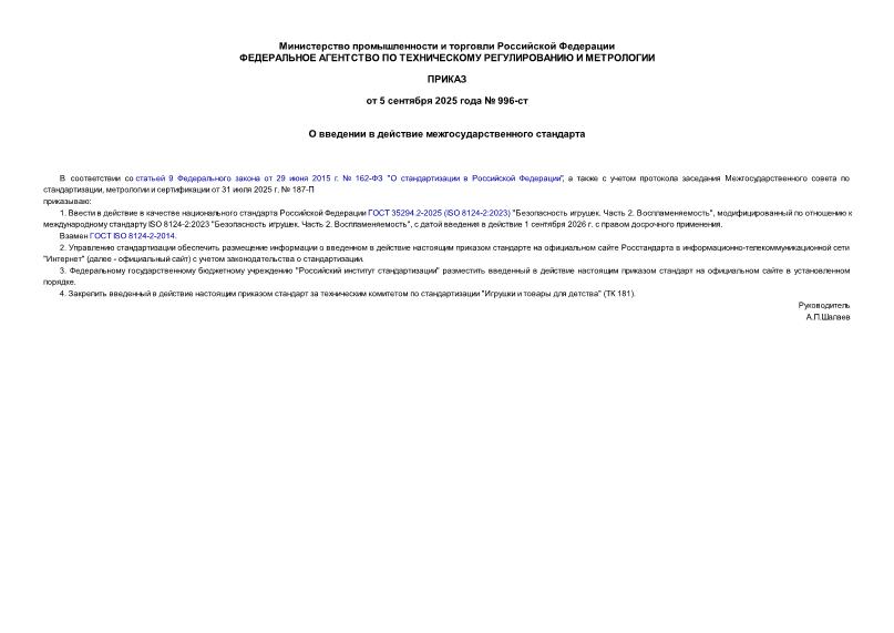 Тип: Приказ 996-ст