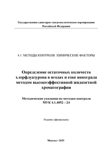 МУК 4.1.4052-24 Определение остаточных количеств хлорфлуазурона в ягодах и соке винограда методом высокоэффективной жидкостной хроматографии