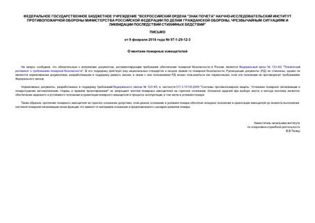 Утвержден: ФГБУ ВНИИПО МЧС России; Федеральное государственное бюджетное учреждение "Всероссийский ордена "Знак Почета" научно-исследовательский институт противопожарной обороны Министерства Российской Федерации по делам гражданской обороны, чрезвычайным ситуациям и ликвидации последствий стихийных бедствий", 09.02.2018