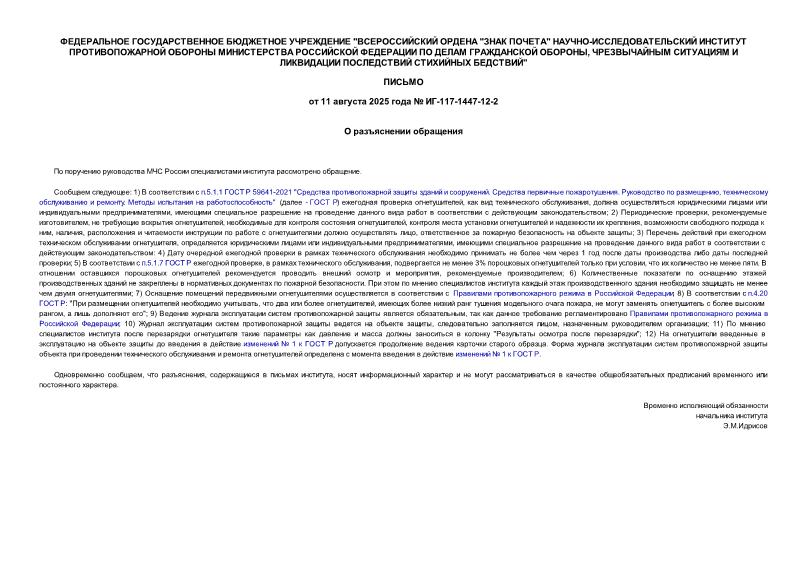 Утвержден: ФГБУ ВНИИПО МЧС России; Федеральное государственное бюджетное учреждение "Всероссийский ордена "Знак Почета" научно-исследовательский институт противопожарной обороны Министерства Российской Федерации по делам гражданской обороны, чрезвычайным ситуациям и ликвидации последствий стихийных бедствий", 11.08.2025