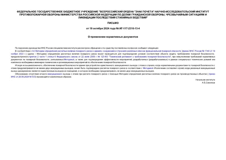 Утвержден: ФГБУ ВНИИПО МЧС России; Федеральное государственное бюджетное учреждение "Всероссийский ордена "Знак Почета" научно-исследовательский институт противопожарной обороны Министерства Российской Федерации по делам гражданской обороны, чрезвычайным ситуациям и ликвидации последствий стихийных бедствий", 18.10.2024