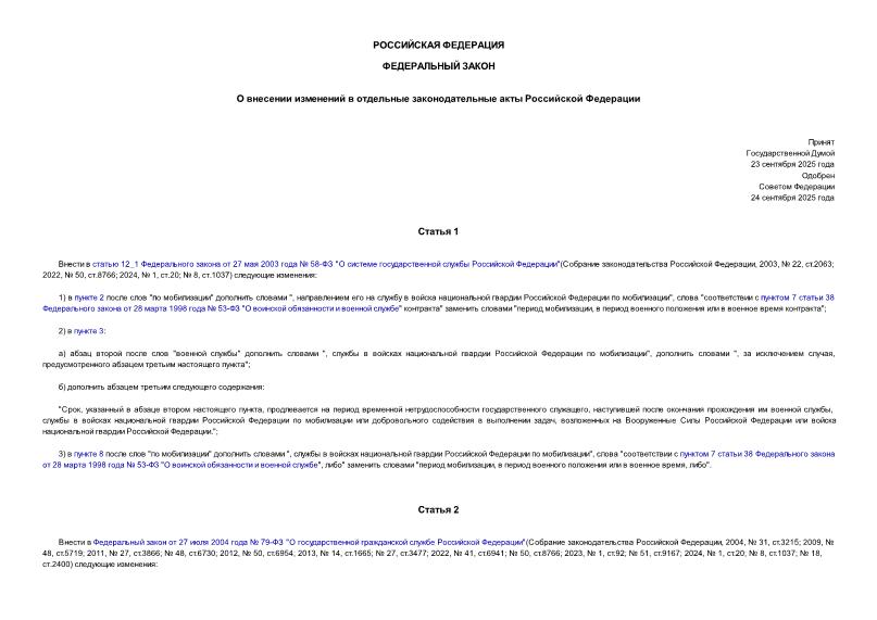 Утвержден: Государственная Дума; Государственная Дума Федерального Собрания Российской Федерации, 29.09.2025