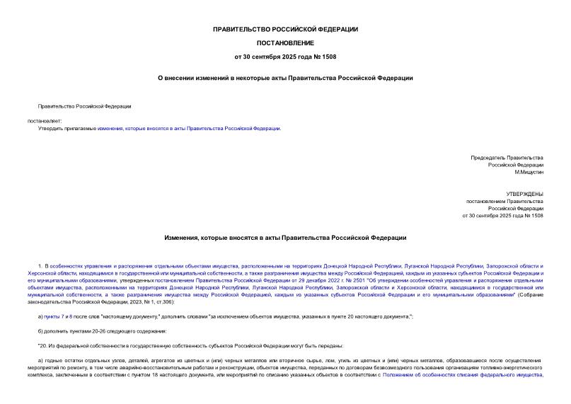 Утвержден: Правительство РФ; Правительство Российской Федерации, 30.09.2025