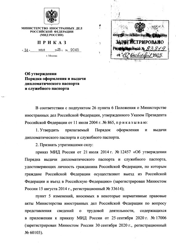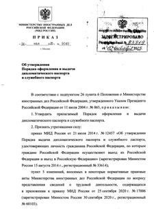 - Об утверждении Порядка выдачи дипломатического паспорта и служебного паспорта, удостоверяющих личность гражданина Российской Федерации, по которым граждане Российской Федерации осуществляют выезд из Российской Федерации и въезд в Российскую Федерацию