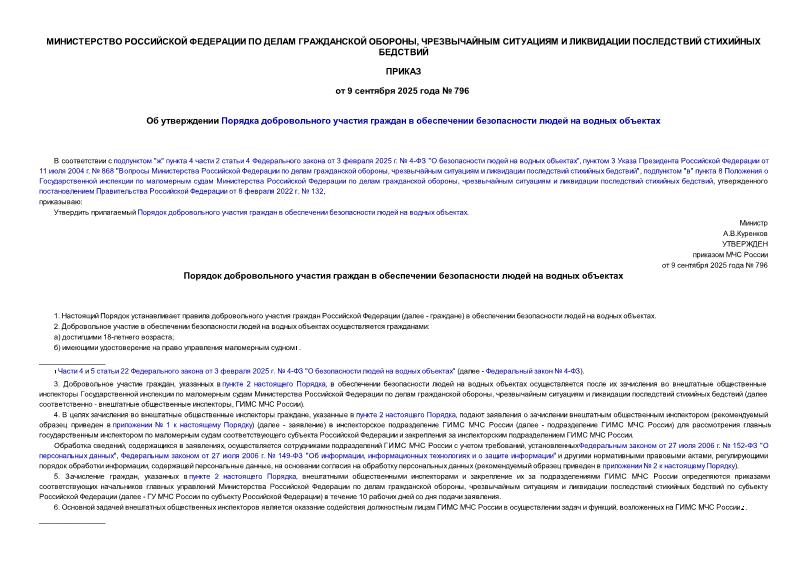 Утвержден: МЧС России; Министерство Российской Федерации по делам гражданской обороны, чрезвычайным ситуациям и ликвидации последствий стихийных бедствий, 09.09.2025