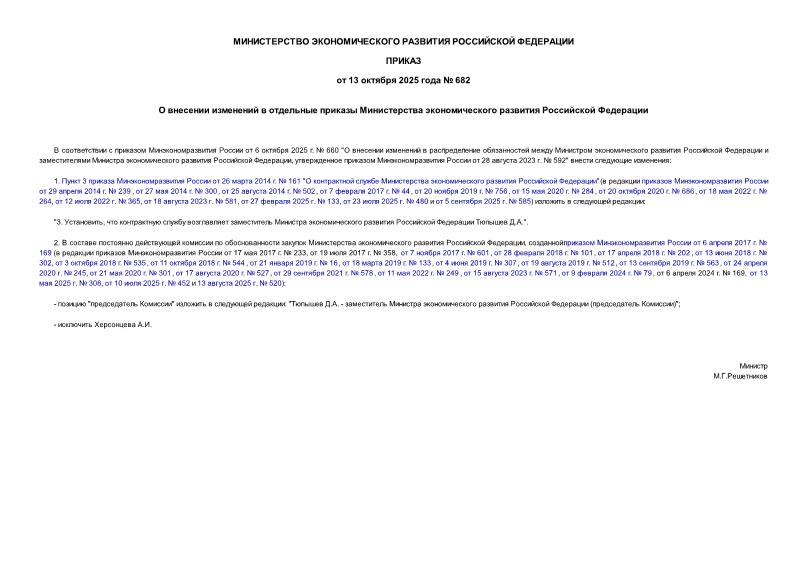 - О внесении изменений в приказ Минэкономразвития России от 26 марта 2014 г. № 161 "О контрактной службе Министерства экономического развития Российской Федерации"