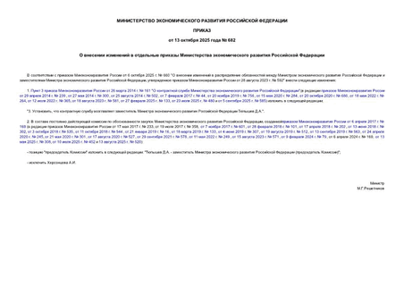 - О внесении изменений в отдельные приказы Министерства экономического развития Российской Федерации