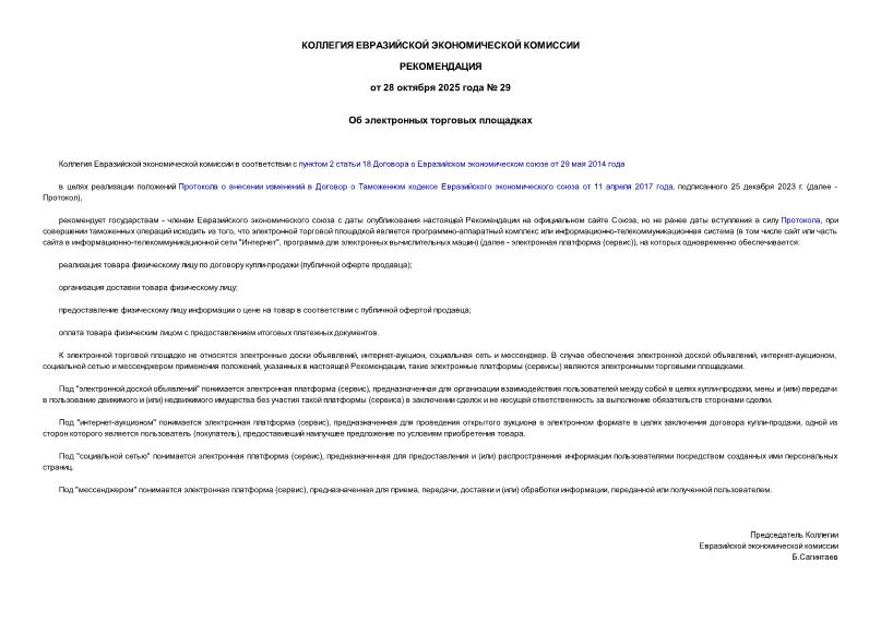 Утвержден: Коллегия ЕЭК; Коллегия Евразийской экономической комиссии, 28.10.2025
