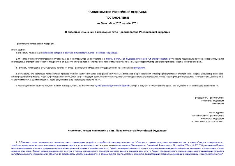 - О внесении изменений в некоторые акты Правительства Российской Федерации по вопросам заключения договоров энергоснабжения (купли-продажи (поставки) электрической энергии (мощности) до завершения процедуры технологического присоединения энергопринимающих устройств потребителей электрической энергии