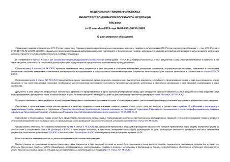 Утвержден: ФТС России; Федеральная таможенная служба, 23.09.2019