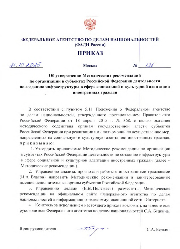 Утвержден: ФАДН России; Федеральное агентство по делам национальностей, 21.10.2025