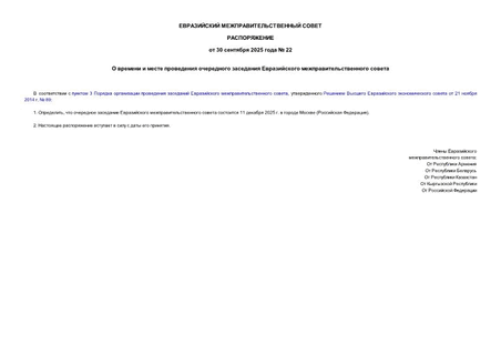 Утвержден: Евразийский межправительственный совет, 30.09.2025