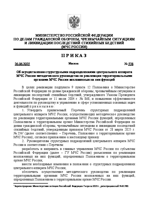 Утвержден: МЧС России; Министерство Российской Федерации по делам гражданской обороны, чрезвычайным ситуациям и ликвидации последствий стихийных бедствий, 26.06.2025