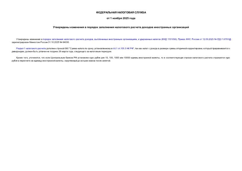 Утвержден: ФНС России; Федеральная налоговая служба, 01.11.2025