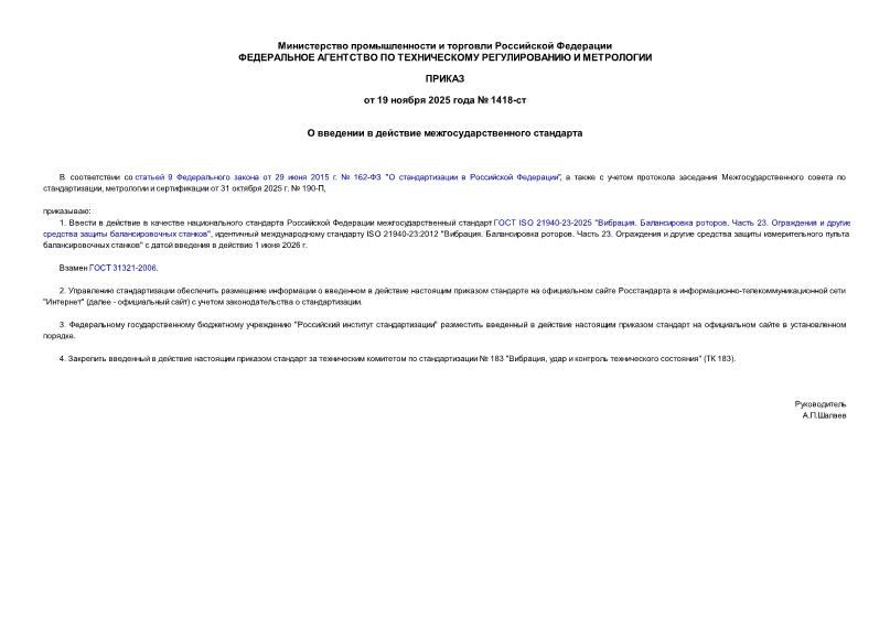 Тип: Приказ 1418-ст