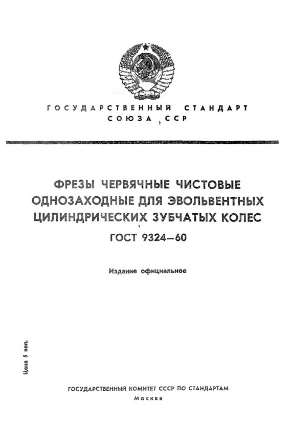 • ГОСТ 9324-80 - Фрезы червячные чистовые однозаходные для цилиндрических зубчатых колес с эвольвентным профилем. Технические условия