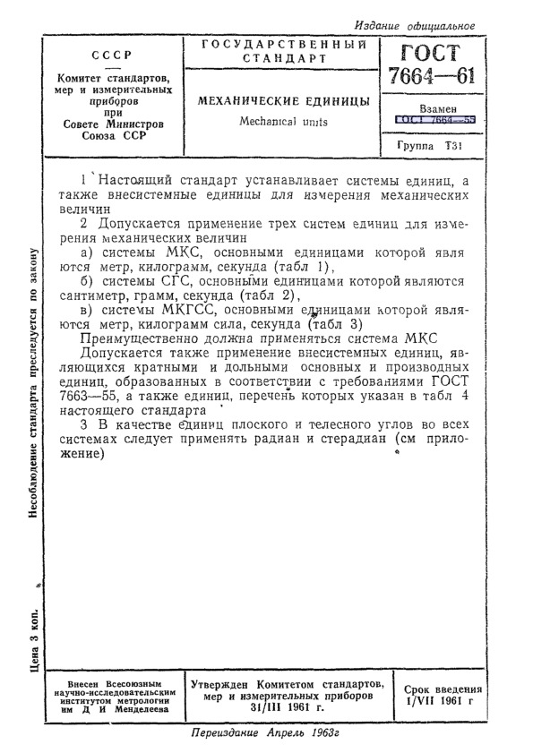 Утвержден: Госстандарт СССР; Комитет стандартов, мер и измерительных приборов при Совмине СССР, 31.03.1961