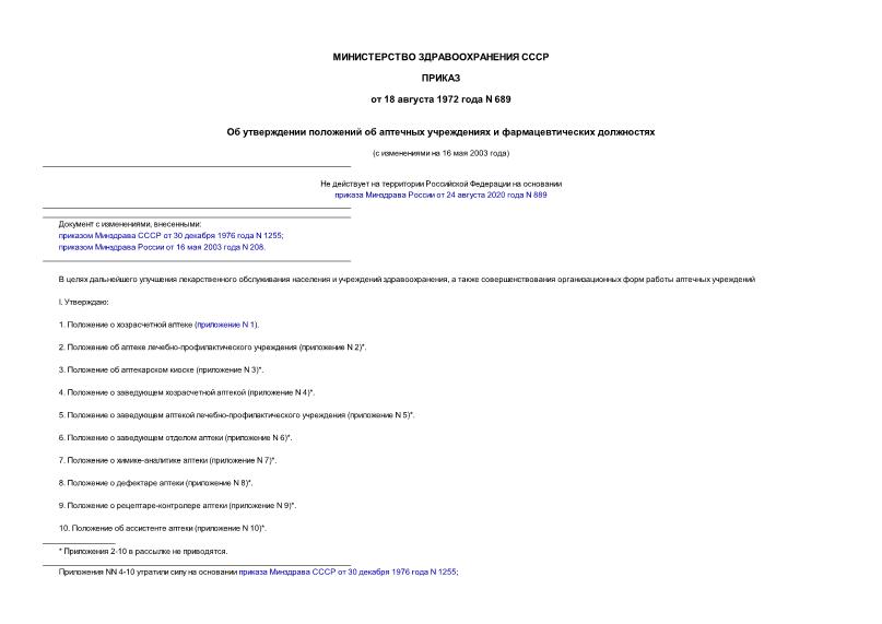 Утвержден: Минздрав СССР; Министерство здравоохранения СССР, 18.08.1972