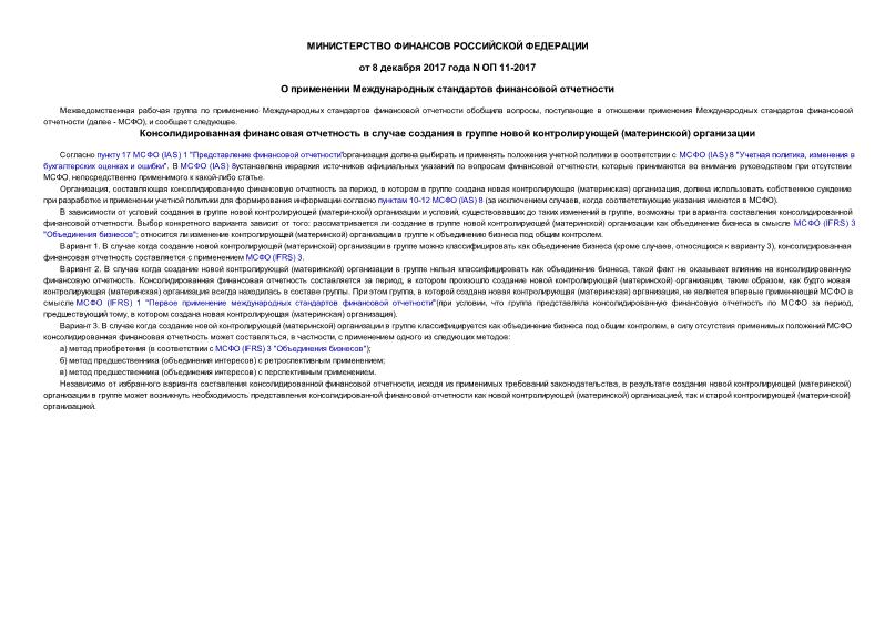 Утвержден: Минфин России; Министерство финансов Российской Федерации, 08.12.2017