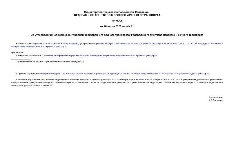 Утвержден: Росморречфлот; Федеральное агентство морского и речного транспорта, 26.03.2021